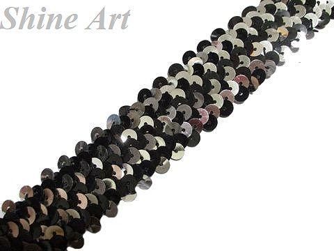 ストレッチ スパンコール ブレード 【3Row ブラックシルバーミックス】