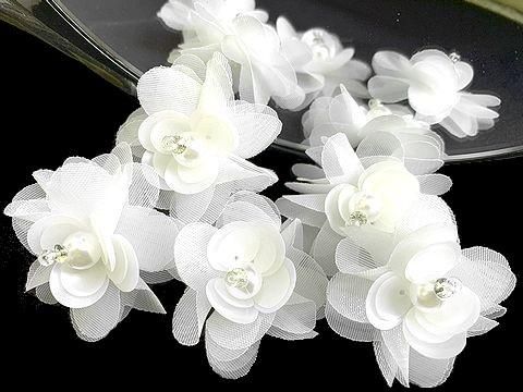 大きさ 直径約4.5センチ前後 5個 1組でのお値段です。(数量1=5枚) オーガンジーで裁断されたお花モチーフの材料です。 機械裁断されておりますが、きれいに裁断されていない箇所も ございます。 立体的に型どられております。 花弁中央のスパンコール、パールとビーズがアクセントとなっております。 手作りで制作されている商品となり、手作りでの形の悪さ 歪さがあるものがございます。 機械裁断されております。 モチーフ周囲はきれいに裁断されていない、裁断が綺麗ではない 形が歪んでいる、ほつけている、切れている等ございます。 繊細なモチーフですので ご使用用途により、摩擦などの力により破損する恐れはございます。 また色落ち色移りする可能性もございますのでご注意お願いいたします。 細かな刺繍となっております。糸キレ/糸抜けする可能性がございますので お取り扱いには処理をお願いいたします。 輸入品となるため日本製のように完璧なものをお求めの場合はご遠慮ください。 本製品ご使用による身体や衣類、装飾へのすべての破損、損傷につきましては 当方では一切の責任は負いかねますことをご承知おきの上ご購入ねがいます 最近チェックした商品