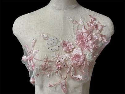 とても清楚なピンクとホワイトのお色があわさり 可愛いお色となっております。 大きいお花3枚は3D(立体)になっております。 ウェディングカラードレスのモチーフに使われるものです。 ところどころ赤のラインストーンも光っています。 大きさ 縦約27cm×横約33cm 推奨は致しませんが、部分的にカットしてお使いいただくことも できるかも。(各自のご判断にてお願いします。) サイズは画像を参照お願いいたします。 フラッシュなし、蛍光灯下での撮影です。 トルソーは9号細身です。 海外からの輸入品となります。 在庫切れ若しくは数量が足りない等、入荷までに3週間程かかります。 お時間に余裕をもってお問い合わせください。 機械刺繍されております。 土台メッシュ生地は入荷時からきれいに処理されていない状態です。 周囲はかなり乱雑にカットされておりますので、お客様の方で 使いやすいようにカットしてください。 配送の際には2つ折り、3つ折りにしての梱包配送となりますことをご了承願います。 繊細なモチーフですので ご使用用途により、摩擦などの力により破損する恐れはございます。 また色落ち色移りする可能性もございますのでご注意お願いいたします。 細かな刺繍となっております。糸キレ/糸抜けする可能性がございますので お取り扱いには処理をお願いいたします。 本製品ご使用による身体や衣類、装飾へのすべての破損、損傷につきましては 当方では一切の責任は負いかねますことをご承知おきの上ご購入ねがいます 最近チェックした商品
