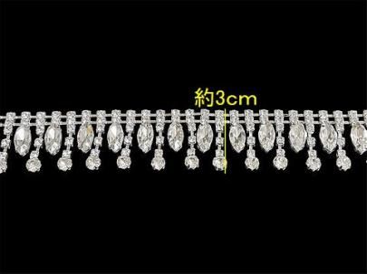 各事項、説明等についてご承諾頂いた上でご注文ください。 ◆型番 RC-012 ◆商品名 デコレーション ラインストーンチェーン #012 ◆カラー ※画像をご参照ください (参考カラー クリスタル 土台シルバー) ◆サイズ 巾最大 約3cm ◆販売単位 数量1=1ヤード(約90センチ) ◆商品コメント ダイヤモンドストーンが多変美しいブライダルドレスで使用される ラインストーンチェーンです。 大変クォリティーの高い商品となっております。 ゴージャスで大変美しい商品です。 職人がストーンを一つ一つはめて作っている商品となります。 手作りですので、多少の粗がある場合がございますが殆どわかりません。 (裏面チェーンの溶接等) 衣装やお洋服の縁取りや、バッグ、小物などに。 とてもゴージャスなトリムとなっております。 ※トルソー画像配置はアレンジ例となっております。 ◆再入荷(再製作)について ご予約から当店到着まで約10日〜2週間かかります。 在庫数では足りない等ご要望がございましたら お問い合わせください。 数量1ずつのカット済みとなります。 ◆特記事項 ・商品名に記載のカラーは一般的に表現される色名称です。 ・表示のサイズは目安としてお考えください。 ・トリム/モチーフは手作りのため、ロットにより色合い、サイズ、形状 が若干変わってくる場合がございますのでご了承願います。 ・海外製品のため、完璧な商品をお求めの方はご遠慮ください。 ・表示の在庫数量をご用意できない場合がございます。 ◆注意事項 ・表示画像の色表現は、お客様がご使用されているモニター (画面)によって異なる場合がありますのでご注意ください。 ・ご注文後の変更、交換、返品、キャンセルはご用意する商品の 特性上の理由により一切お受けできません。 ・本来の用途以外に使用しないでください。 ・食べ物ではありませんので誤って口に入れないようにご注意く ださい。 ・誤飲やケガなど思わぬ事故の恐れがありますので小さなお子様 には絶対に与えないでください。 ・小さなお子様の手の届かない所に保管してください。 ・鋭角、鋭利な部分もありますのでケガをしないよう充分ご注意 ください。 ・取付作業の方法や手段によっては破損する場合がありますので 充分にご注意ください。 ・強く押したり、曲げたり、ぶつけたり、摩擦など無理な力が加 わることで破損する恐れがありますのでご注意ください。 ・コーティングフィルムやカラーフィルムが捲れたり・剥がれた りする可能性や色落ち・色移りする可能性があります。 お取扱いには充分ご注意ください。 ・火気のある場所、高温・多湿の場所、直射日光の当たる場所に は放置しないでください。 ・廃棄の際は各地方自治体の廃棄区分に従ってください。 ・本品の使用による人体・衣類等すべての製品への損傷に関しま しては弊社では一切の責任を負いかねますので予めご了承のう えでご使用ください。 最近チェックした商品