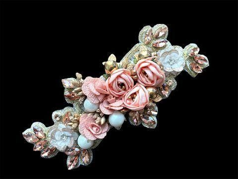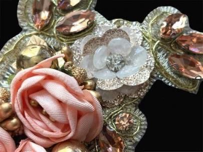 立体的に作られた手作りのモチーフです。 立体のお花やキラキラ光るラインストーン スパンコールのお花や丸大のゴールドやパールの玉など 大変ゴージャスに作られています。 まるでプリンセスのドレスについているような装飾に なっています! 一つ一つ手作りのため、作り手により若干お花の形が 違う場合がございます。(花の開き方や大きさなど) スケート、新体操、ダンス、社交ダンス、鞄等にいかがでしょうか? アイロン接着または縫い付けでお使いください。 大きさは画像に記載しておりますが、だいたいの目安として お考え願います。 海外からの輸入品となります。 縫い付け、ボンド接着にてお使いください。 在庫後れの場合は再入荷まで1週間〜10日要します。 お問い合わせください。 繊細なモチーフですので ご使用用途により、摩擦などの力により破損する恐れはございます。 また色落ち色移りする可能性もございますのでご注意お願いいたします。 細かな刺繍となっております。糸キレ/糸抜けする可能性がございますので お取り扱いには処理をお願いいたします。 輸入品となるため日本製のように完璧なものをお求めの場合はご遠慮ください。 本製品ご使用による身体や衣類、装飾へのすべての破損、損傷につきましては 当方では一切の責任は負いかねますことをご承知おきの上ご購入ねがいます 最近チェックした商品