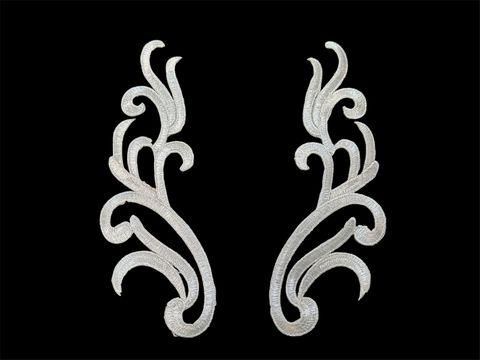 (アイロン接着可能) こちらの銀は明るい艶やかな銀糸となっております。 スケート、新体操、ダンス、社交ダンス、鞄等にいかがでしょうか? アイロン接着、ボンド接着、または縫い付けでお使いください。 刺繍の上にラインストーンを貼り付けても綺麗だと思います。 大きさは画像に記載しておりますが、だいたいの目安として お考え願います。 当方では推奨はいたしませんが 部分的にカットしてお使いいただくことも可能だと思います。 その際はほつれてこないように カットした箇所にボンド(当方販売しておりますE6000)を 接着していただき硬化させてからお使いください。 海外からの輸入品となります。 必要数に満たない場合はお取り寄せもさせていただきます 期間は約2週間前後とお考え下さい。 機械刺繍されております。 モチーフ周囲はヒートカットされておりますので、きれいに処理されていない 箇所もございます。 繊細なモチーフですので ご使用用途により、摩擦などの力により破損する恐れはございます。 また色落ち色移りする可能性もございますのでご注意お願いいたします。 細かな刺繍となっております。糸キレ/糸抜けする可能性がございますので お取り扱いには処理をお願いいたします。 本製品ご使用による身体や衣類、装飾へのすべての破損、損傷につきましては 当方では一切の責任は負いかねますことをご承知おきの上ご購入ねがいます 最近チェックした商品
