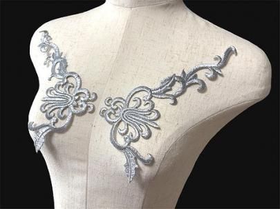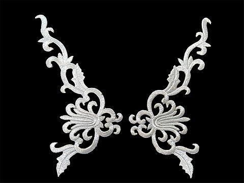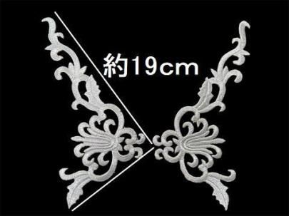 (アイロン接着可能) スケート、新体操、ダンス、社交ダンス、鞄等にいかがでしょうか? アイロン接着、ボンド接着、または縫い付けでお使いください。 刺繍の上にラインストーンを貼り付けても綺麗だと思います。 大きさは画像に記載しておりますが、だいたいの目安として お考え願います。 当方では推奨はいたしませんが 部分的にカットしてお使いいただくことも可能だと思います。 その際はほつれてこないように カットした箇所にボンド(当方販売しておりますE6000)を 接着していただき硬化させてからお使いください。 海外からの輸入品となります。 必要数に満たない場合はお取り寄せもさせていただきます 期間は約2週間前後とお考え下さい。 機械刺繍されております。 モチーフ周囲はヒートカットされておりますので、きれいに処理されていない 箇所もございます。 繊細なモチーフですので ご使用用途により、摩擦などの力により破損する恐れはございます。 また色落ち色移りする可能性もございますのでご注意お願いいたします。 細かな刺繍となっております。糸キレ/糸抜けする可能性がございますので お取り扱いには処理をお願いいたします。 本製品ご使用による身体や衣類、装飾へのすべての破損、損傷につきましては 当方では一切の責任は負いかねますことをご承知おきの上ご購入ねがいます