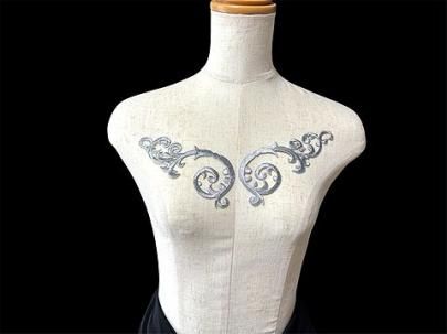 銀糸で刺しゅうされたモチーフです。(アイロン接着可能)