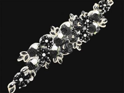 3D レースモチーフ 立体的に作られた手作りのモチーフです。 【参考色名】 ブラック 【大きさ】 長さ約40センチ 幅最大約10センチ ストーンもビーズもお花も一つひとつ職人の 手によって作られた大変手間のかかっている ゴージャスなモチーフです。 ウエディングドレス、、カラードレスのために 作られた美しいモチーフとなっております。 まるでプリンセスのドレスについているような装飾 ですよ! 一つ一つ手作りのため、作り手により若干お花の形が 違う場合がございます。(花の開き方や大きさなど) スケート、新体操、ダンス、社交ダンス、鞄等にいかがでしょうか? 縫い付けまたは接着にてお使いください。 当店では推奨はいたしませんが 一部カットできそうな箇所があります。 カットされた場合はE6000でカットした 箇所を固めていただきお使いください。 海外からの輸入品となります。 在庫後れの場合は再入荷まで2週間前後要します。 お問い合わせください。 繊細なモチーフですので ご使用用途により、摩擦などの力により破損する恐れはございます。 また色落ち色移りする可能性もございますのでご注意お願いいたします。 細かな刺繍となっております。糸キレ/糸抜けする可能性がございますので お取り扱いには処理をお願いいたします。 輸入品となるため日本製のように完璧なものをお求めの場合はご遠慮ください。 本製品ご使用による身体や衣類、装飾へのすべての破損、損傷につきましては 当方では一切の責任は負いかねますことをご承知おきの上ご購入ねがいます