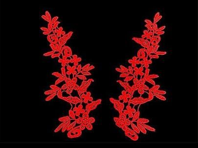 注意事項についてご承諾頂いた上でご注文願います。 【商品詳細】 刺繍モチーフ 左右ペアの価格です。 大きさ 片方 25×9cm カラー レッド系 刺繍糸があまい箇所もございます。 配送の際は2つ折りでの梱包配送になることもございます。 ※在庫切れ若しくは数量が足りない等、入荷までに2〜3週間程かかります。 お時間に余裕をもってお問い合わせください。 ※表示画像はお使いのモニターにより異なる場合がございます。 【サイズ】 画像を参照頂きご確認お願いいたします。 サイズは大体の目安としてご参考までにお願いいたします。 マウスオンにて画像が切り替わりますので他画像を ご参照お願いいたします。 ※参考画像のトルソーは細身の9号となります。 撮影はフラッシュなし、蛍光灯下での撮影となります。 【ご注意事項】 必ずご一読お願いいたします。 海外からの輸入商品となります為、日本製のような完璧な商品をお求めの場合は ご遠慮ねがいます。検品はしておりますが、多少のエラー等が含まれる場合がございます。 製品は機械刺繍されております。 入荷時からきれいに処理されていない状態のものもございます。 入荷時期により(ロット違い)色合いやサイズ、形状が若干異なる場合がございます。 ご了承の上お買い求め願います。 機械刺繍の為糸のテンションにムラがある場合がございます。 ペアモチーフの場合、左右の糸の差異があるものがあり、色合いが若干異なる場合がございます。 配送の際には2つ折りもしくは3つ折りにしての 梱包配送となりますことをご了承願います。 繊細なモチーフですので ご使用用途により、摩擦などの力により破損する恐れはございます。 また色落ち色移りする可能性もございますのでご注意お願いいたします。 細かな刺繍となっております。糸キレ/糸抜けする可能性がございますので お取り扱いには処理をお願いいたします。 ご注文後のご変更およびお客様ご都合によるキャンセルはお受けできません。 フリーメール、携帯メールではメールフィルターによりメールが届かないことが 稀に発生しております為、フリーメールおよび携帯メールでのご注文の方には 当店携帯端末よりもメールでご連絡させていただきます。 商品は装飾品となります。 本来の用途以外にお使いにならないでください。 食べ物ではございませんので、誤って口に入れないようにご注意お願いいたします。 小さなお子様の手の届かない場所で保管してください。 誤飲や怪我などの恐れがございますので、小さなお子様の手の届かないところで 保管ねがいます。 鋭角、鋭利な物もございますため、怪我などに十分ご注意お願いいたします。 強く押したり、曲げたり、ぶつけたり、摩擦など無理な力が加わることで破損 する恐れがありますのでご注意ください。 製品によりコーティングフィルムやカラーフィルムが捲れたり・剥がれたりする可能性 色落ち・色移りする可能性があります。 お取扱いには充分ご注意ください。 火気のある場所、高温・多湿の場所、直射日光の当たる場所には放置しないでください。 廃棄の際は各地方自治体の廃棄区分に従ってください。 本品ご使用による人体・衣類等すべての製品への損傷に関しましては当店では 一切の責任を負いかねますので予めご了承のうえでご使用ください。 本製品ご使用による身体や衣類、装飾へのすべての破損、損傷につきましては 当方では一切の責任は負いかねますことをご承知おきの上ご購入ねがいます 最近チェックした商品