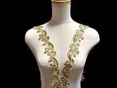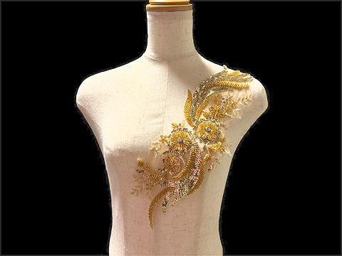 ご注文前に必ず下記の注意事項をお読みください。 注意事項についてご承諾頂いた上でご注文願います。 【商品詳細】 大変手の込んだゴールド系刺繍モチーフとなります。 ライトゴールドメタリックの細かなスパンコールや ゴールドのビーズが丁寧に刺しゅうされています。 当店で推奨はいたしませんが センター部分の刺繍はつながっていますが 分割してお使いいただくことも。 カットした際は切り口をボンドなどで補強してください。 そのままですとほつけてきます。 スパンコールもビーズもとても小さいパーツなので 手触りはとてもしなやかです。 縫い付けまはたボンド接着にてご利用ください。 モチーフの周囲はデザインぎりぎりに ヒートカットされております。 【ご注意事項】 必ずご一読お願いいたします。 海外からの輸入商品となります為、日本製のような完璧な商品をお求めの場合は ご遠慮ねがいます。検品はしておりますが、多少のエラー等が含まれる場合がございます。 製品は機械刺繍されております。 入荷時からきれいに処理されていない状態のものもございます。 入荷時期により(ロット違い)色合いやサイズ、形状が若干異なる場合がございます。 ご了承の上お買い求め願います。 機械刺繍の為糸のテンションにムラがある場合がございます。 ペアモチーフの場合、左右の糸の差異があるものがあり、色合いが若干異なる場合がございます。 配送の際には2つ折りもしくは3つ折りにしての 梱包配送となりますことをご了承願います。 繊細なモチーフですので ご使用用途により、摩擦などの力により破損する恐れはございます。 また色落ち色移りする可能性もございますのでご注意お願いいたします。 細かな刺繍となっております。糸キレ/糸抜けする可能性がございますので お取り扱いには処理をお願いいたします。 ご注文後のご変更およびお客様ご都合によるキャンセルはお受けできません。 フリーメール、携帯メールではメールフィルターによりメールが届かないことが 稀に発生しております為、フリーメールおよび携帯メールでのご注文の方には 当店携帯端末よりもメールでご連絡させていただきます。 商品は装飾品となります。 本来の用途以外にお使いにならないでください。 食べ物ではございませんので、誤って口に入れないようにご注意お願いいたします。 小さなお子様の手の届かない場所で保管してください。 誤飲や怪我などの恐れがございますので、小さなお子様の手の届かないところで 保管ねがいます。 鋭角、鋭利な物もございますため、怪我などに十分ご注意お願いいたします。 強く押したり、曲げたり、ぶつけたり、摩擦など無理な力が加わることで破損 する恐れがありますのでご注意ください。 製品によりコーティングフィルムやカラーフィルムが捲れたり・剥がれたりする可能性 色落ち・色移りする可能性があります。 お取扱いには充分ご注意ください。 火気のある場所、高温・多湿の場所、直射日光の当たる場所には放置しないでください。 廃棄の際は各地方自治体の廃棄区分に従ってください。 本品ご使用による人体・衣類等すべての製品への損傷に関しましては当店では 一切の責任を負いかねますので予めご了承のうえでご使用ください。 本製品ご使用による身体や衣類、装飾へのすべての破損、損傷につきましては 当方では一切の責任は負いかねますことをご承知おきの上ご購入ねがいます 最近チェックした商品